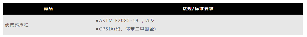 亚马逊要求您发布的所有便携式床栏,均应经过测试且符合下列特定法规或标准要求: